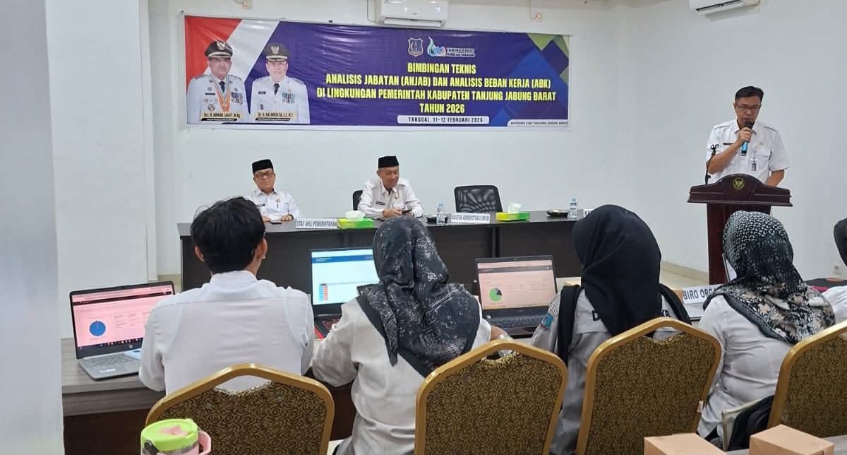LAYARASPIRASI.COM-Pemerintah Kabupaten Tanjung Jabung Barat melalui Badan Kepegawaian dan Pengembangan Sumber Daya Manusia Daerah (BKPSDM) resmi membuka Bimbingan Teknis (Bimtek) Analisis Jabatan (Anjab) dan Analisis Beban Kerja (ABK) Tahun 2026, Rabu (11/2/2026).